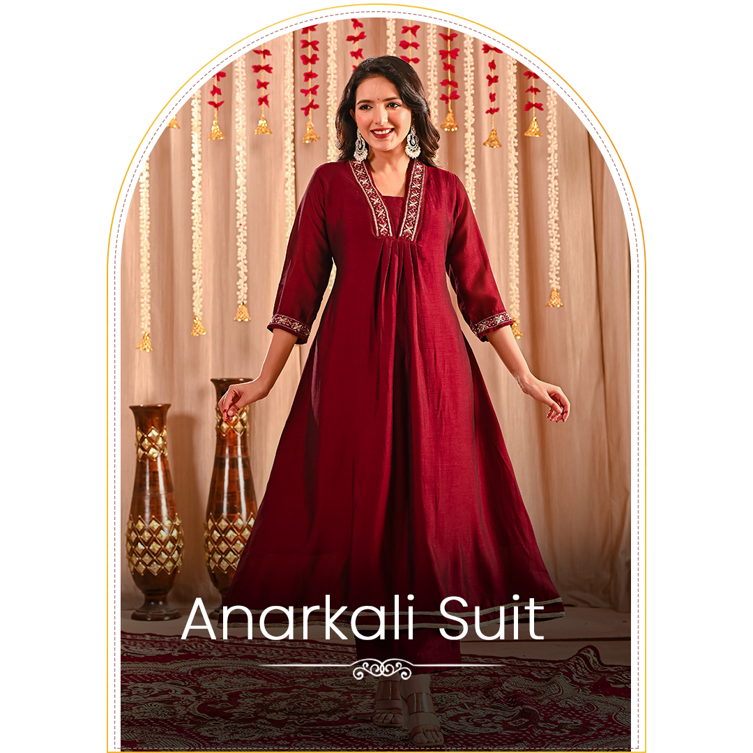 Regal Anarkali Sets: Experience breathtaking grace with our flowing Anarkali silhouettes, meticulously designed for those unforgettable festive moments and grand celebrations.