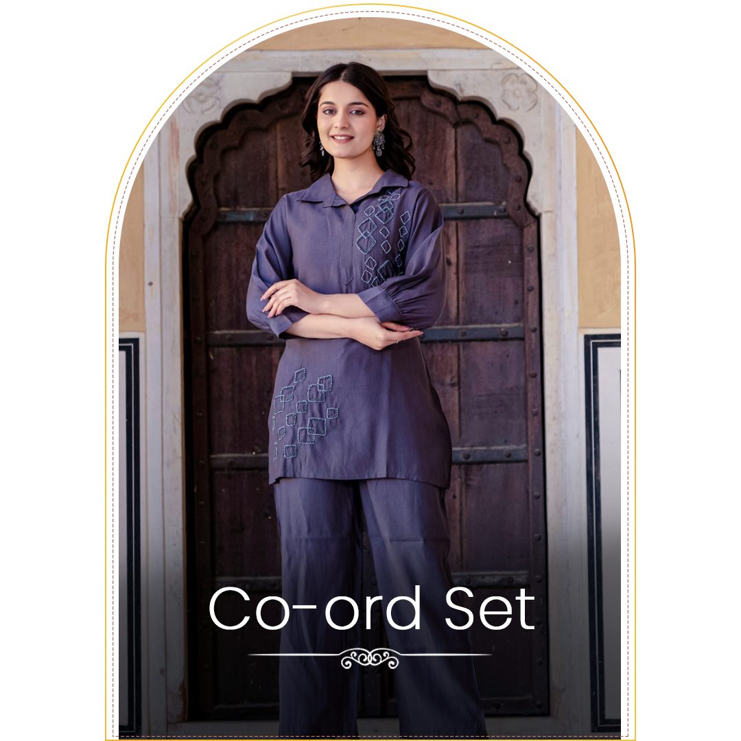 Contemporary Co-ord Sets: Embrace a modern edge with our trendy and coordinated sets, offering a fresh, fashion-forward take on traditional Indian attire.